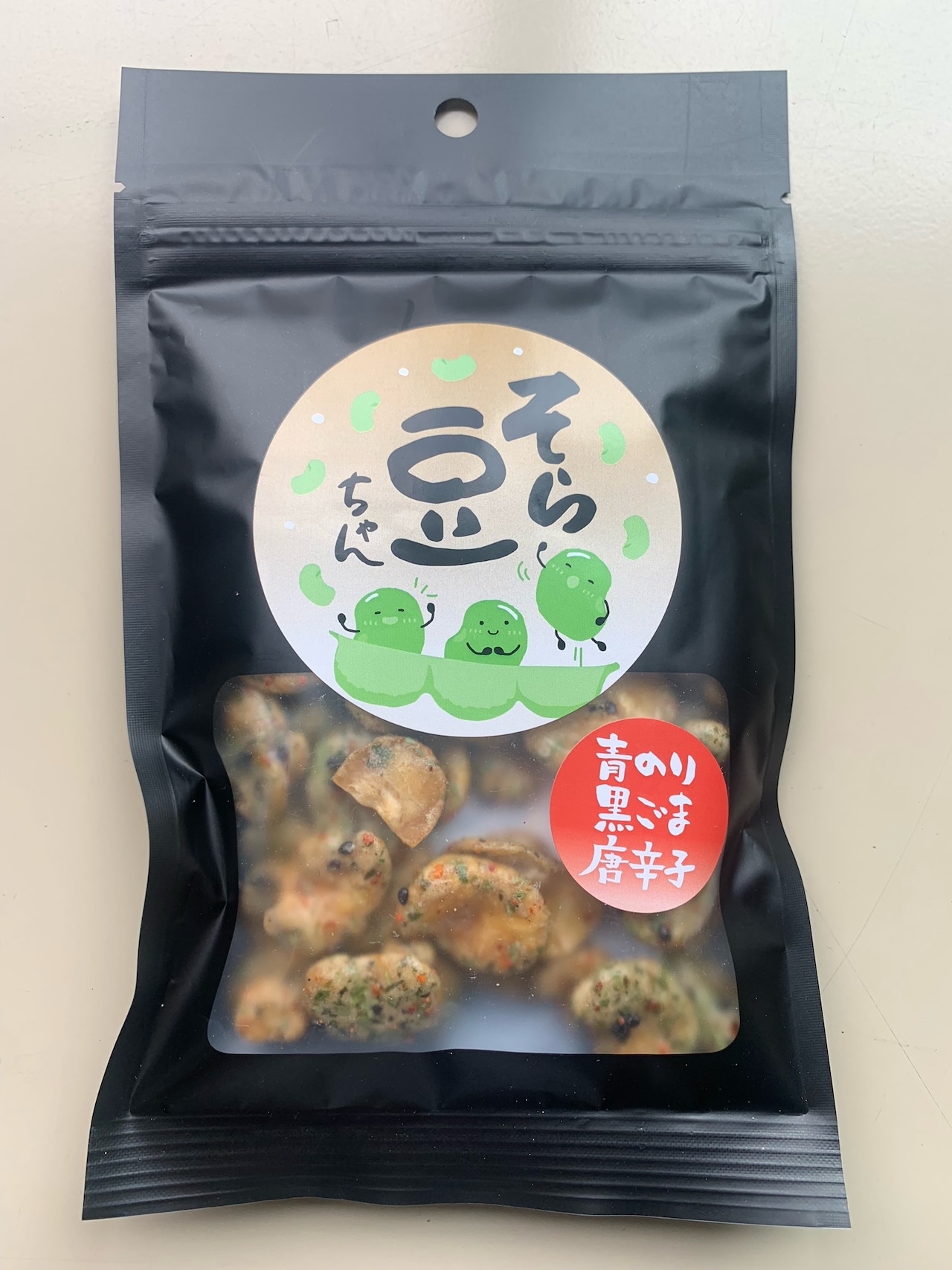 新感覚スナック「そら豆ちゃん 青のり黒ごま唐辛子」の登場です!この魅力的なスナックは、皮を剥いたそら豆をカリッと揚げ、小麦粉と寒梅粉をまぶした後、風味豊かな青のりと香ばしい黒ごま、さらにアクセントとしてピリッと辛い唐辛子を加えて仕上げました。外はサクッと、中にはそら豆の豊かな風味が広がり、青のりと黒ごまのハーモニーが絶妙です。ビールやお酒のおつまみや、ちょっとした軽食としても最適です。個包装されているので、持ち運びにも便利で、いつでもどこでも手軽に楽しむことができます!