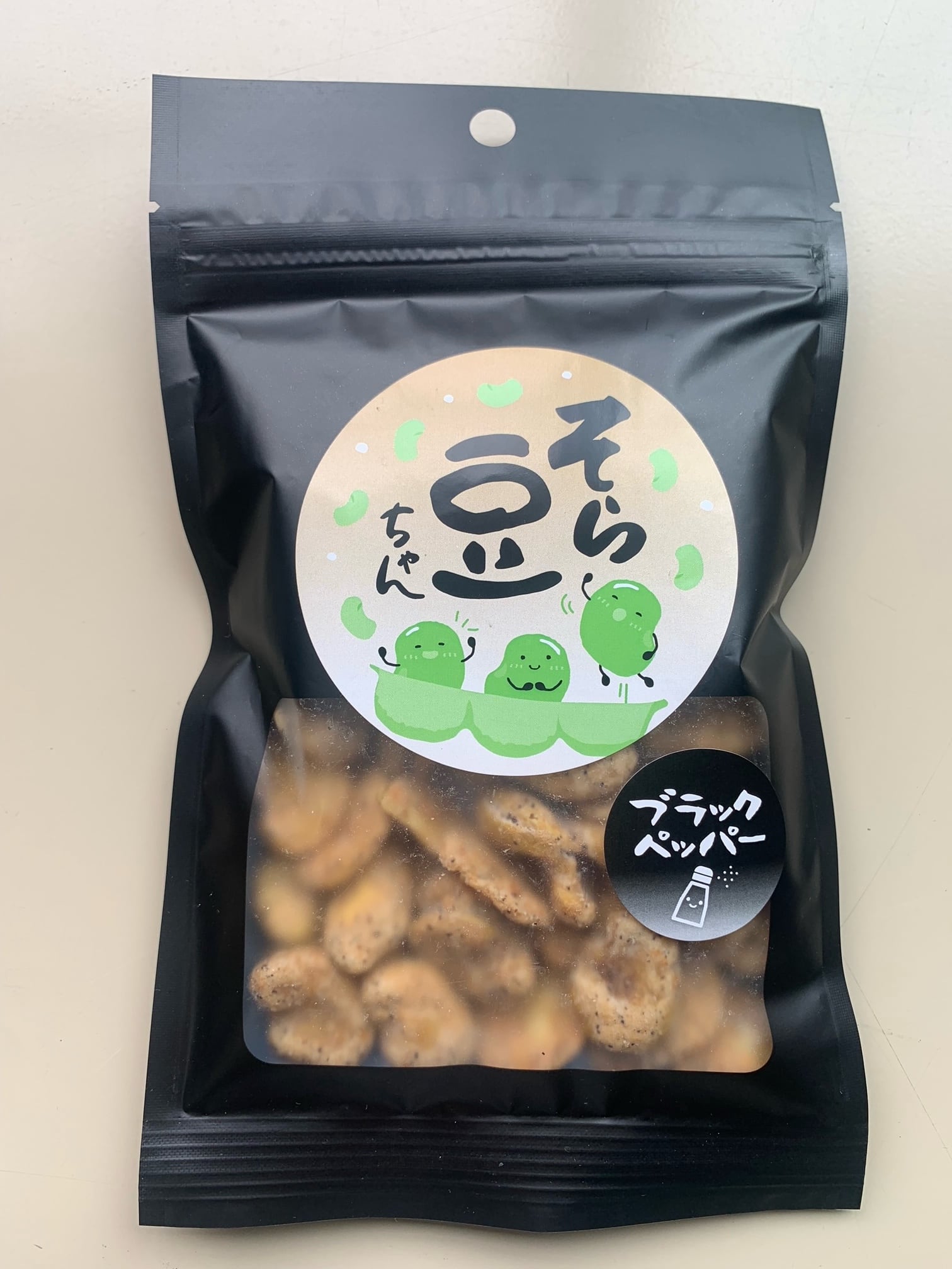 新感覚スナック「そら豆ちゃん ブラックペッパー」の登場です!この魅力的なスナックは、皮を剥いたそら豆をカリッと揚げ、小麦粉と寒梅粉をまぶした後、香り高いブラックペッパーを贅沢にまぶして仕上げました。外はサクッと、中にはそら豆の豊かな風味が感じられ、ブラックペッパーのピリッとした刺激が絶妙なアクセントを加えています。ビールやお酒のおつまみ、または軽食としてもぴったりです。個包装されているので、持ち運びにも便利で、いつでもどこでも手軽に楽しむことができます!